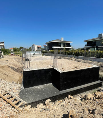 Projemizde temel altında 20 santimetre kalınlığında drenaj takmanı bulunmaktadır. Temel 50 santimetre kalınlığında radye temel olarak imal edilmiştir. Temelde Sıvı Geçirimsizlik katkılı C30 beton kullanılmıştır. Temel altında 4.5 cm kalınlığında Ravago marka Proof Membran kullanılmıştır. Temel perde yüksekliği 1.5 metredir. Temel perdelerinde çift kat püskürtme izolasyon uygulaması, üzerine 3 cm kalınlığında xps ve drenaj levhası kullanılmıştır.
